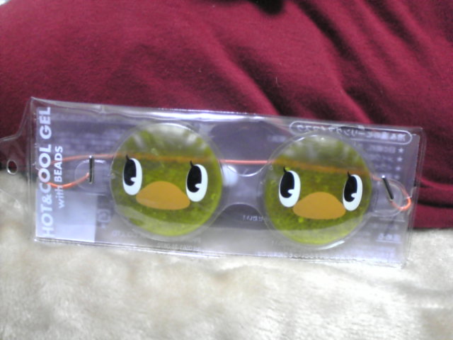 「冷却・加温できるジェルが入ったアイマスクだ。これと名刺ケース、あと椅子に座ったまま使えるエアピローを頂いた」