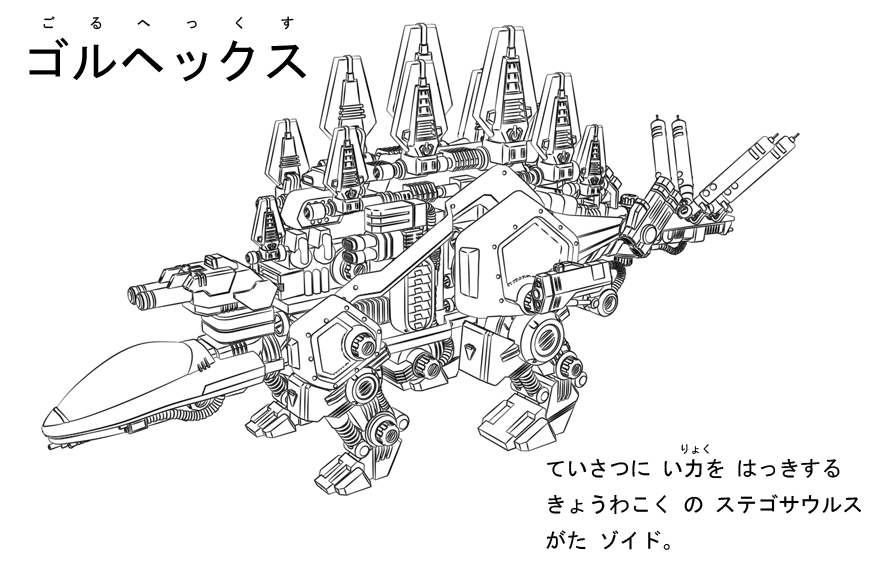 「よいこのゾイドぬりえシリーズ。ラインのみ出力して子供向けのぬりえっぽいものを」