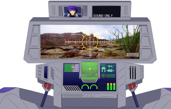 「ああ、アニメで定番だった『何もないキャノピー上にいきなりウィンドウが開いて表示される』ってのが個人的にどうも好きじゃなくてな。少々古臭い感じになってしまうが思い切って専用のモニターを配置してみた。これとメインモニターは天井側に付いてる設定」