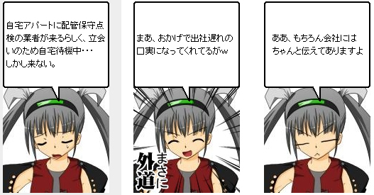 「火曜日は会社にプチリフォームの業者が入るという事で、15時過ぎ出社だ」