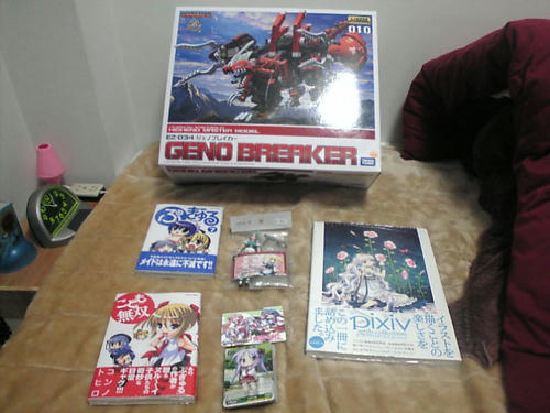 「あと以前泊まりに行った友人宅で実物を見て買おうと決めていたpixivの本と、アクションフィギュア『デュエルメイド』の新作単品買い、あとWS『らき☆すた』のトライアルデッキも買ってみた」